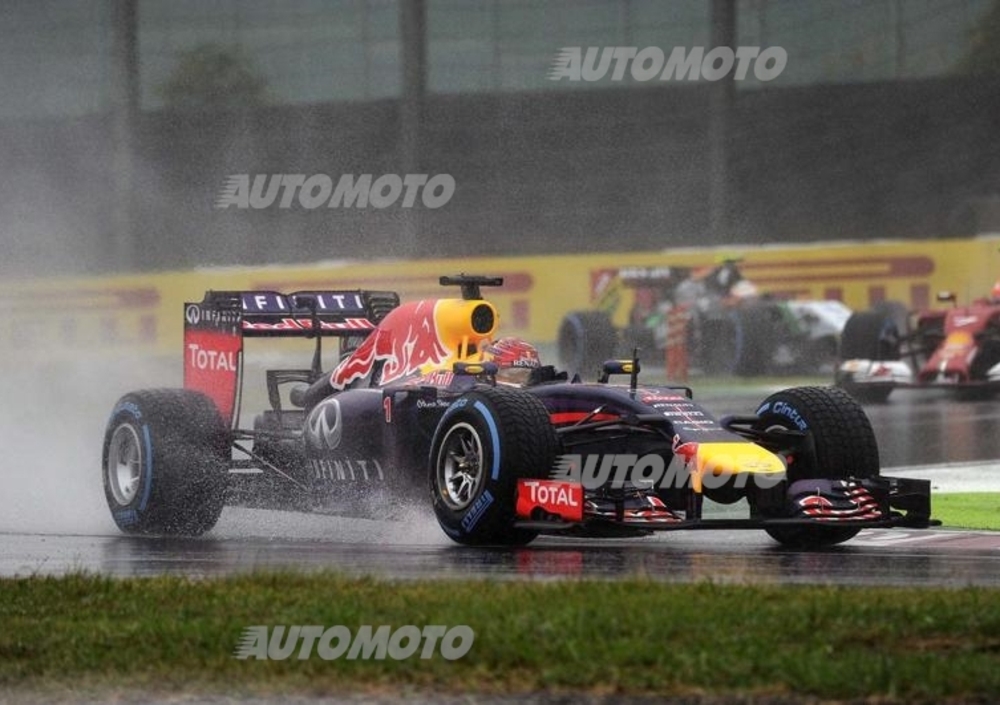 Intanto Ricciardo supera la McLaren di Button e guadagna la quarta posizione. Sutil perde il controllo della Sauber e va ad impattare contro le protezioni. Entra in pista la Safety Car. Alcune monoposto ne approfittano per montare nuove gomme con cui affrontare gli ultimi giri. Alcuni piloti optano per le full wet visto che ha ripreso a piovere.