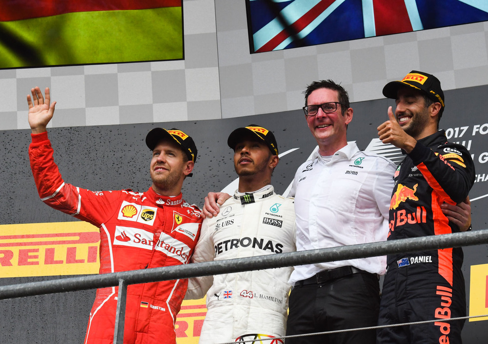 La vittoria di Lewis Hamilton nel Gran Premio del Belgio gli ha permesso di ridurre il distacco in classifica piloti su Sebastian Vettel, secondo oggi, a 7 lunghezze. Vettel ha totalizzato 220 punti, contro i 213 di Hamilton. 179 sono le lunghezze vantate dall'alfiere della Mercedes, Valtteri Bottas, quinto oggi. A quota 132 punti troviamo Daniel Ricciardo, in forza alla Red Bull, che precede il finlandese della Ferrari, Kimi Raikkonen (128). Il compagno di squadra di Ricciardo, Max Verstappen (67), precede Sergio Perez, della Force India (56). Vanta 47 lunghezze il francese della Force India, Esteban Ocon; segue Carlos Sainz (36), della Toro Rosso. Completa la top ten il tedesco della Renault, Nico Hulkenberg (34). Seguono il brasiliano della Williams, Felipe Massa (27); il pilota della Haas Racing, Romain Grosjean (26) il canadese della Williams, Lance Stroll (18); il compagno di squadra di Grosjean, Kevin Magnussen (11); Fernando Alonso (10), della McLaren; Pascal Wehrlein (5), della Sauber; e Daniil Kvyat (4), della Toro Rosso.