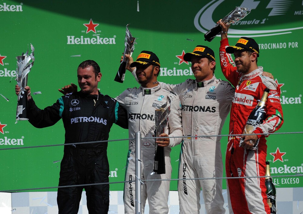 Grazie alla vittoria in Messico, Lewis Hamilton ha ridotto il distacco su Nico Rosberg in classifica piloti, raggiungendo quota 330 punti, contro i 349 di Rosberg, il leader. Il gap di Hamilton nei confronti di Rosberg ammonta ora a 19 lunghezze. Segue Daniel Ricciardo, giunto a quota 239 punti; l'australiano della Red Bull precede l'alfiere della Ferrari, Sebastian Vettel (192), e il compagno di squadra di Vettel, Kimi Raikkonen (178). Segue il pilota della Red Bull, Max Verstappen (175). Vanta 85 punti, invece, il pilota della Force India, Sergio Perez. Seguono il pilota della Williams, Valtteri Bottas (85), il compagno di Perez, Nico Hulkenberg (60), Fernando Alonso, in forza alla McLaren (52), l'altro alfiere della Williams, Felipe Massa (51), Carlos Sainz (38), della Toro Rosso, e Romain Grosjean (29), in forza alla Haas Racing. 25 sono le lunghezze vantate da Danill Kvyat, della Toro Rosso, che precede il pilota della McLaren, Jenson Button (21). Seguono Kevin Magnussen (7), della Renault; il pilota della Manor, Pascal Wehrlein (1); l'alfiere della McLaren, Stoffel Vandoorne (1), e Jolyon Palmer (1), in forza alla Renault.