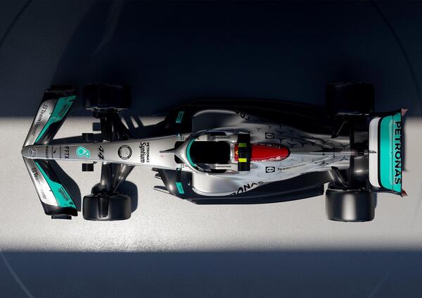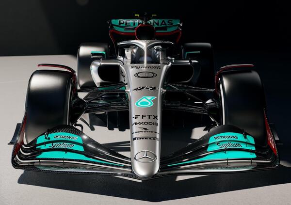 La Mercedes non nasconde tutte le sue carte, come ha fatto la Red Bull la scorsa settimana. Sul palcoscenico della presentazione di oggi, oltre a Lewis Hamilton e George Russell, non c’era un prototipo, ma la vera W13, che tra poche ore scenderà in pista a Silverstone per uno shakedown. La Stella a tre punte, insomma, percorre la strada della Ferrari, mostrando la sua effettiva monoposto per la stagione 2022 di Formula 1, senza scoprire però tutte le sue carte. A un primo sguardo, si notano le pance, molto corte e muscolose, e un trattamento molto particolare del fondo. Il muso è lungo e la punta si spinge fino all'ultimo profilo dell'ala anteriore, a cucchiaio.