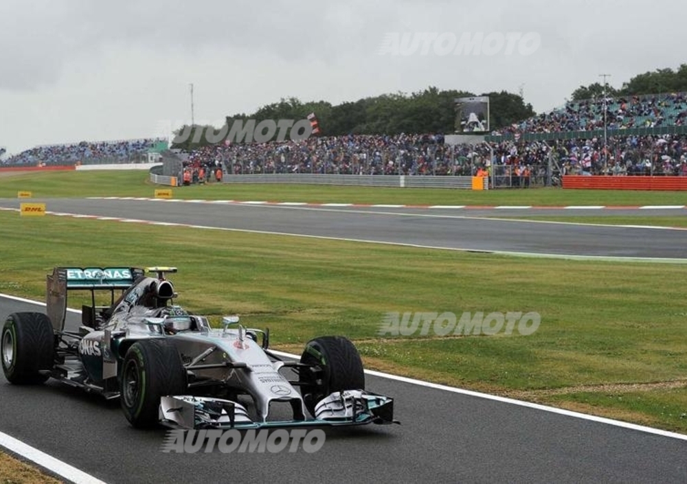 Ore 14:00: Prendono il via dal circuito di Silverstone le qualifiche del Gran Premio d'Inghilterra. Nelle qualifiche del venerdì il più veloce è stato Lewis Hamilton, seguito dalla Mercedes del compagno di squadra Rosberg e dalla Ferrari di Fernando Alonso. La pioggia sembra non voler lasciare il tracciato inglese mentre le monoposto entrano nel vivo del weekend di gara. Adrian Sutil è il primo ad iniziare il suo giro lanciato, mentre molte vetture sono ancora ai box.