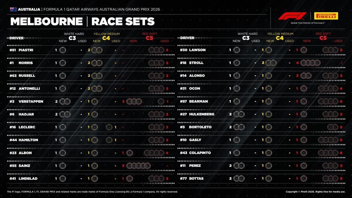 Gomma media per Russell, Antonelli, Hadjar, Leclerc, Norris, Hamilton,