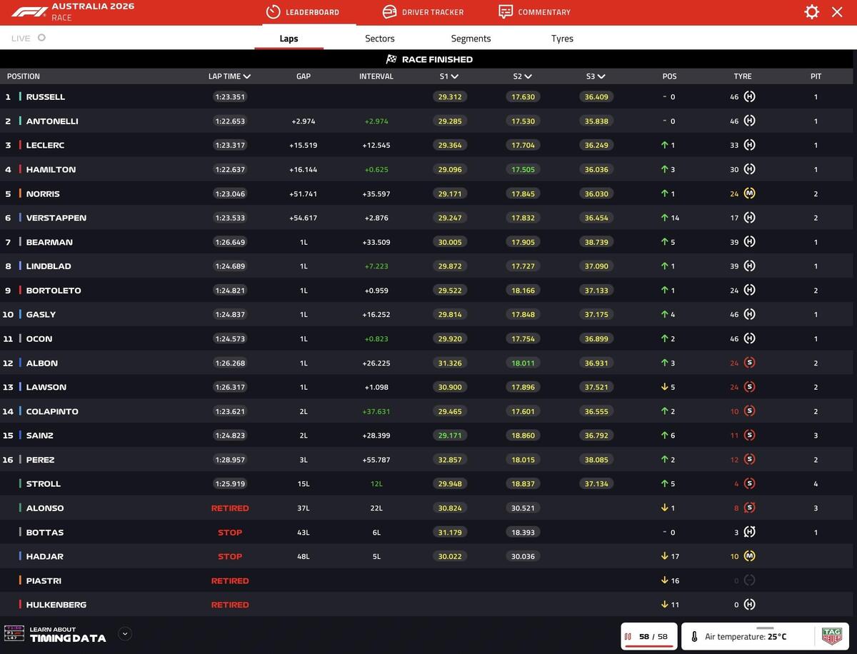 George Russell conquista la prima vittoria della nuova era tecnica di F1! Secondo Antonelli al GP d'Australia con Leclerc che fa ben sperare la Ferrari insieme al quarto posto di Hamilton. Il 2026 è ufficialmente iniziato!