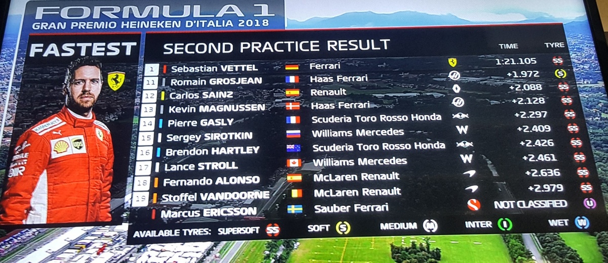 Aggiornamento di classifica durante la sessione di prove libere con la pista asciutta, 29° sull'asfalto 22° nell'aria e le Ferrari davanti a tutti.
