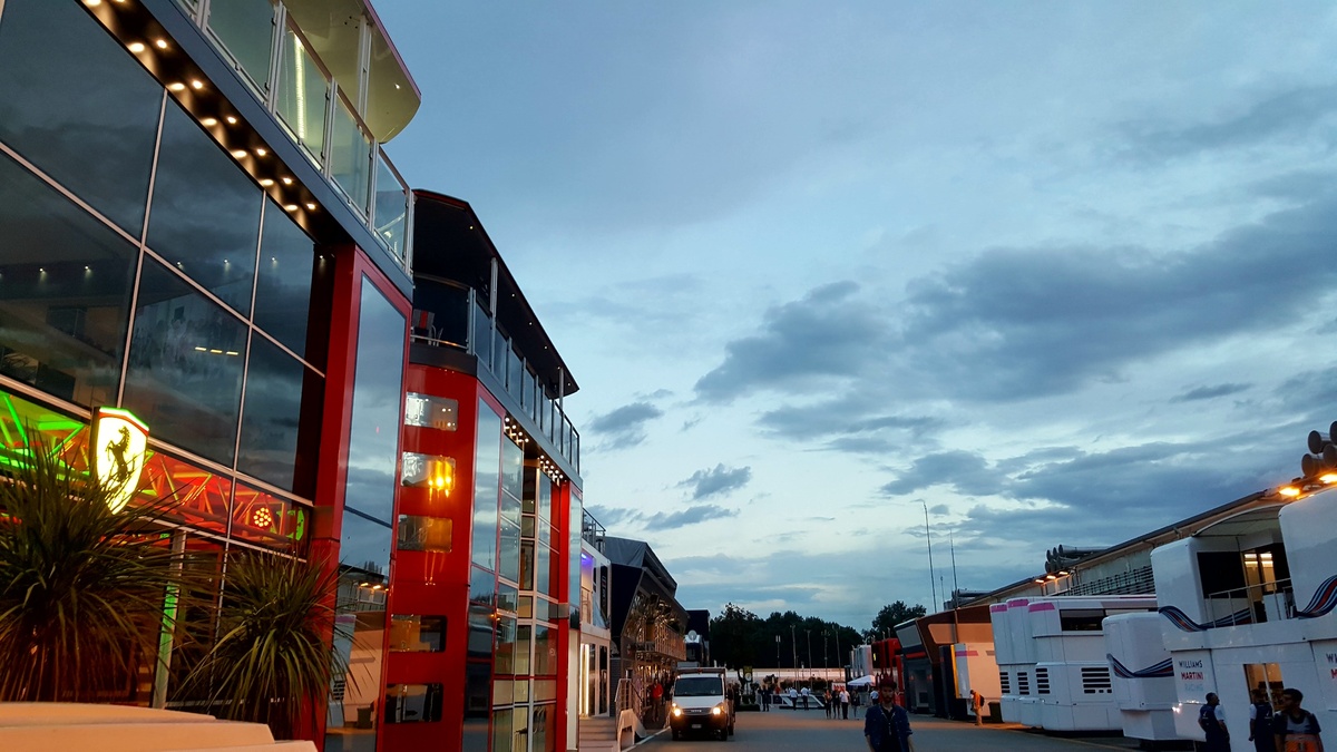 Cala la sera sull'autodromo Nazionale Monza in attesa della gara di domani. Il Paddock si svuota e forse anche il cielo rimarrà più sereno di oggi.