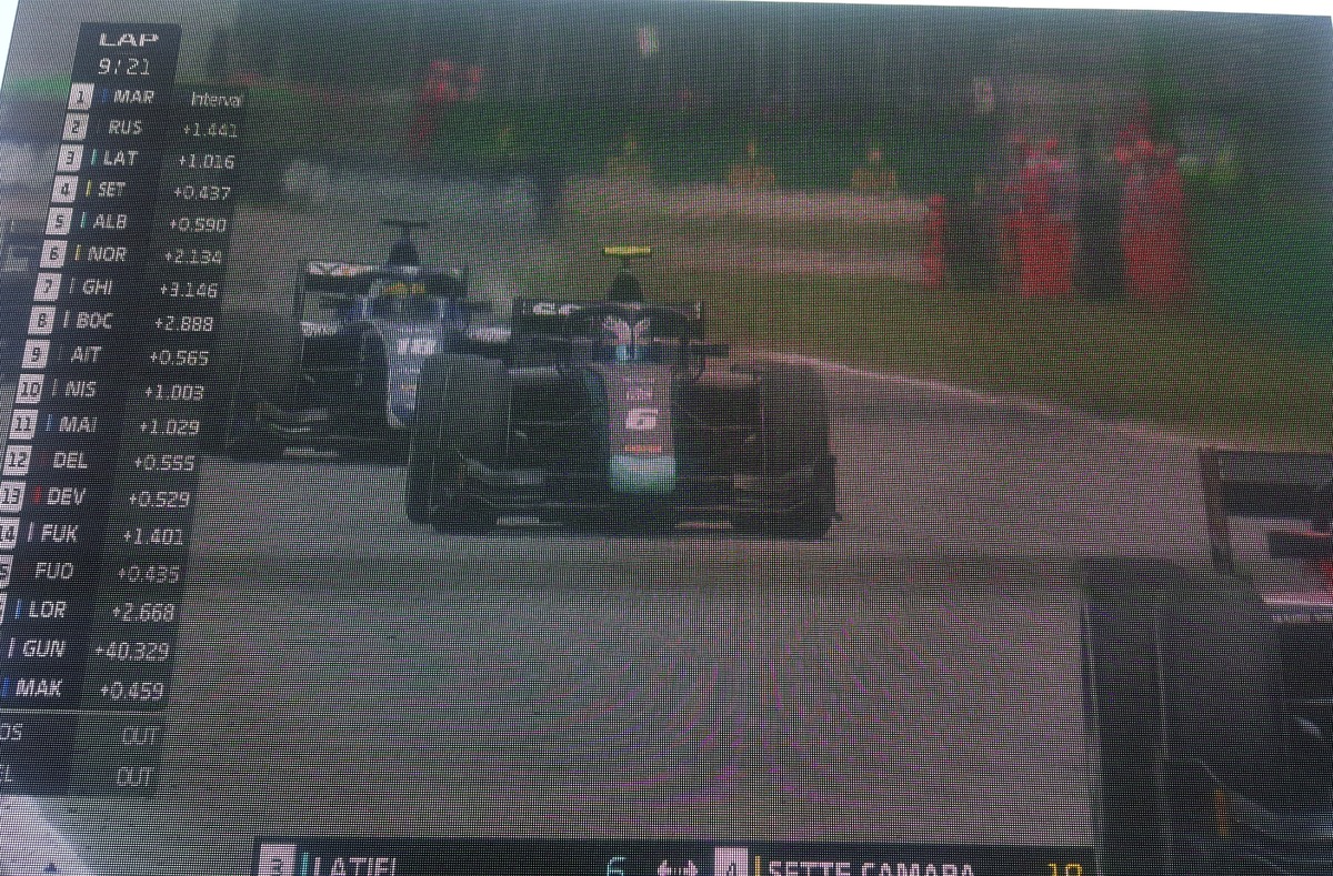 F2. In pista si sta correndo la gara per sabato con Makino leader ma sono i ragazzi che lottano intorno alla quinta posizione che infiammano ogni variante dell'autodromo Nazionale a suon di giri veloci. Norris Russel e Latifi.