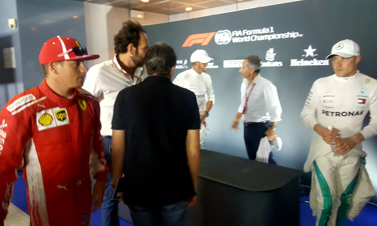 Incontro a sorpresa con il nuovo amministratore delegato Ferrari nei box di Monza. Camilleri alla sua prima usa un profilo molto pacato senza discontinuità rispetto all'impostazione di Marchionne. Vuole fare ancora brillare la stella Ferrari avendo Vettel come Ronaldo alla Juventus ma non scioglie i dubbi sul contratto di Raikkonen.