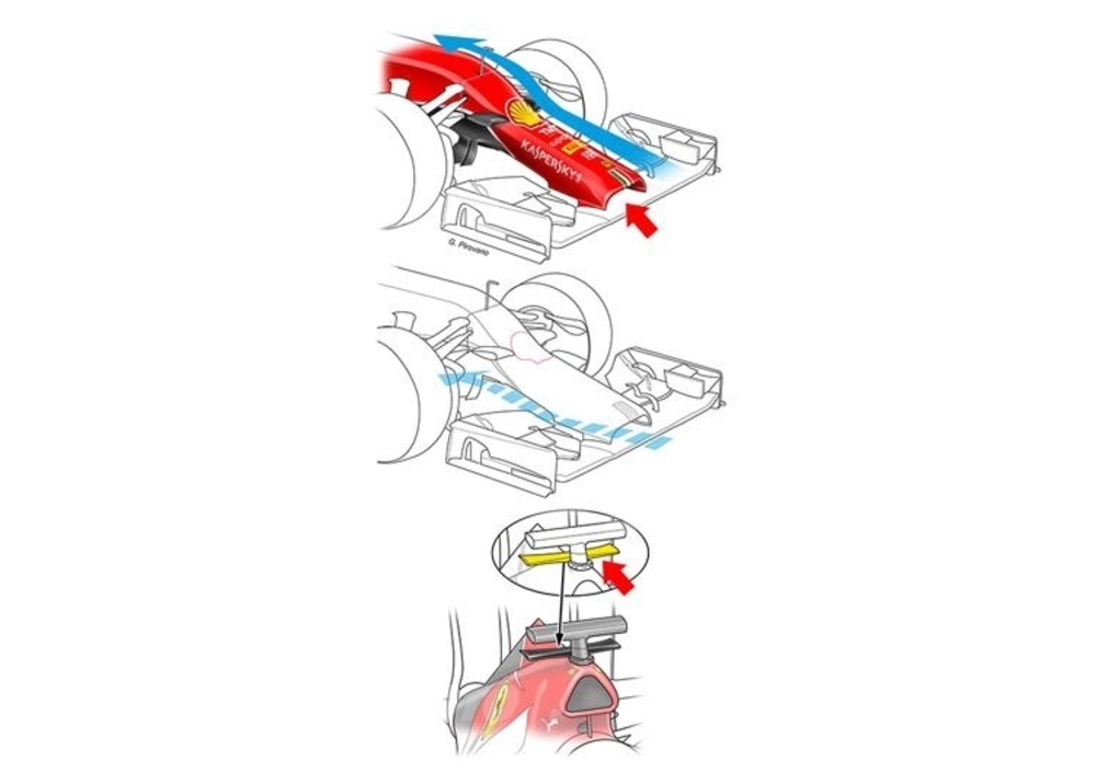 Se entri più forte in curva, esci anche più forte. E lo puoi fare se hai più carico sull’anteriore. Carico ottenuto con una geniale interpretazione delle norme e delle altezze del musetto. A partire dal GP di Spagna di domenica prossima, questa interpretazione verrà copiata da altre squadre, ma la certezza che chi ha scritto le regole sia di vedute limitate, ormai è lampante…