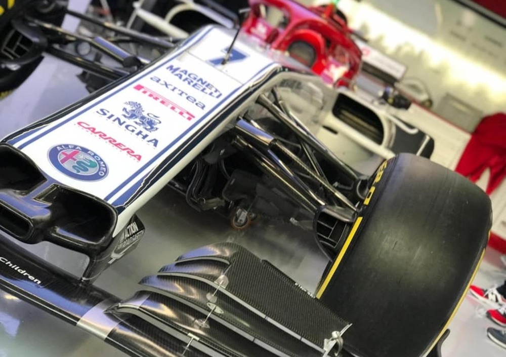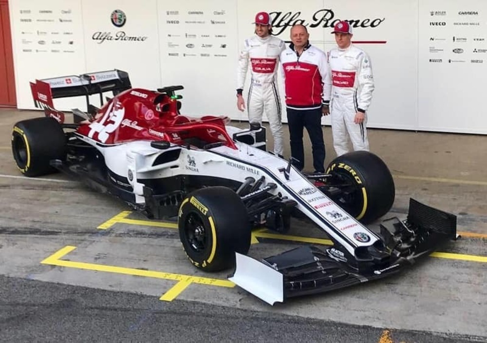 Vista dal vivo la monoposto non è diversissima dalla precedente, 2018, in quanto a colorazione almeno: il Biscione di Milano è più grande sul fondo rosso, anche se rimane molto bianco. Kimi Raikkonen e Antonio Giovinazzi al centro dell'attenzione in Spagna ma anche Svizzera, sede del Team e Italia, patria storica del marchio ufficialmente in gara nel Mondiale.