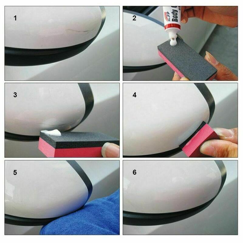 Avete presente la "matita magica" della TV dove un profondo solco nella vernice dell'auto spariva come per incanto al passaggio di un pennarello? Ebbene, non stiamo parlando di questo ma di un "fai da te" un po' più professionale che può realmente mascherare piccole imperfezioni "da parcheggio". Ovviamente serve un prodotto apposito, che potete trovare su eBay o una delle altre piattaforme di e-commerce cercando "rimuovi graffi" o "scratch remover".