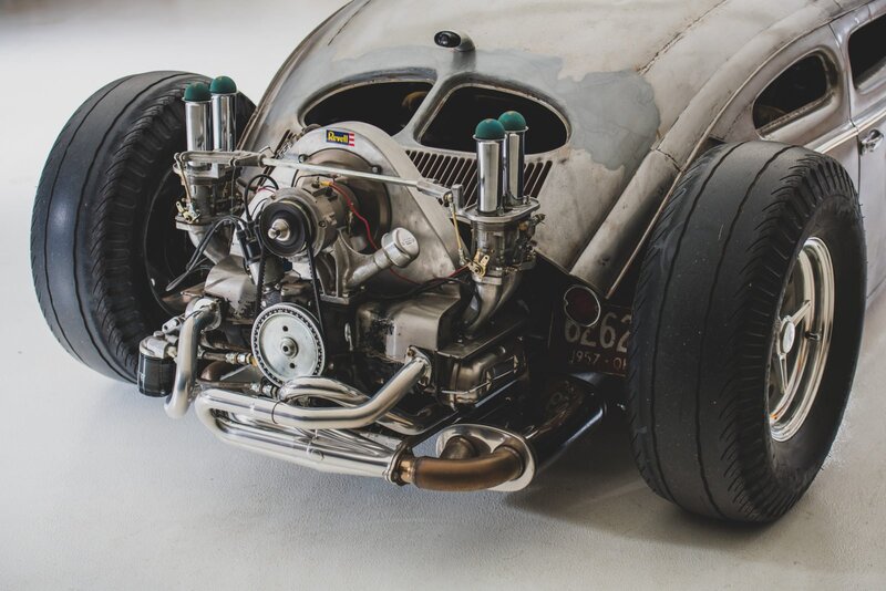 Questo Maggiolino è stato costruito una decina di anni fa da Franz Muhr di Kustom Coach Werks a Grand Junction, in Colorado, proprio ispirandosi a quel periodo, ma estremizzandone il concetto. Il risultato è una hot rod alta 91 cm, poco più degli pneumatici che monta, mentre il parabrezza è quasi una feritoia, essendo alto poco più di 20 cm.