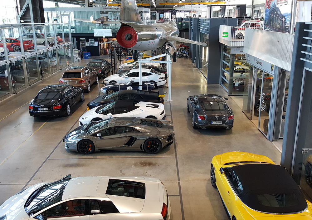 Una manifestazione tendenzialmente informale e aperta a tutti, con attenzione alle storiche certo, ma basta avere l’auto prodotta entro gli ultimi novanta anni e fare in tempo a iscriversi per prendere il via, con costi non proibitivi e programma che prevede percorsi tra la natura e i luoghi storici del Baden-Württemberg, con tappa ad Abstatt e conclusione in quel di Boxberg, dove si trova il tracciato di alta velocità. Primo luogo di riferimento appunto il Motorworld, che ci ha colpiti per come siano stati riqualificati terreni e ambienti dal passato anche tragico, per le attività belliche dell’aeronautica tedesca, a quello che sembra un centro commerciale di vetture unicamente d’alta gamma oppure storiche. Ci si vedono rivenditori e officine autorizzate dei più noti marchi sportivi (es. Lamborghini, Lotus o McLaren) ma anche negozi, punti ristorazione e albergo a tema, senza tralasciare lo spazio nei box multipiano trasparenti dove chiunque (abbiam visto molte Ferrari e Porsche, ma potreste parcheggiarvi anche la più consumata utilitaria) può lasciare in sicurezza con un pizzico di vanità la propria auto a un costo mensile abbastanza ridotto (vicino ai 200 euro).