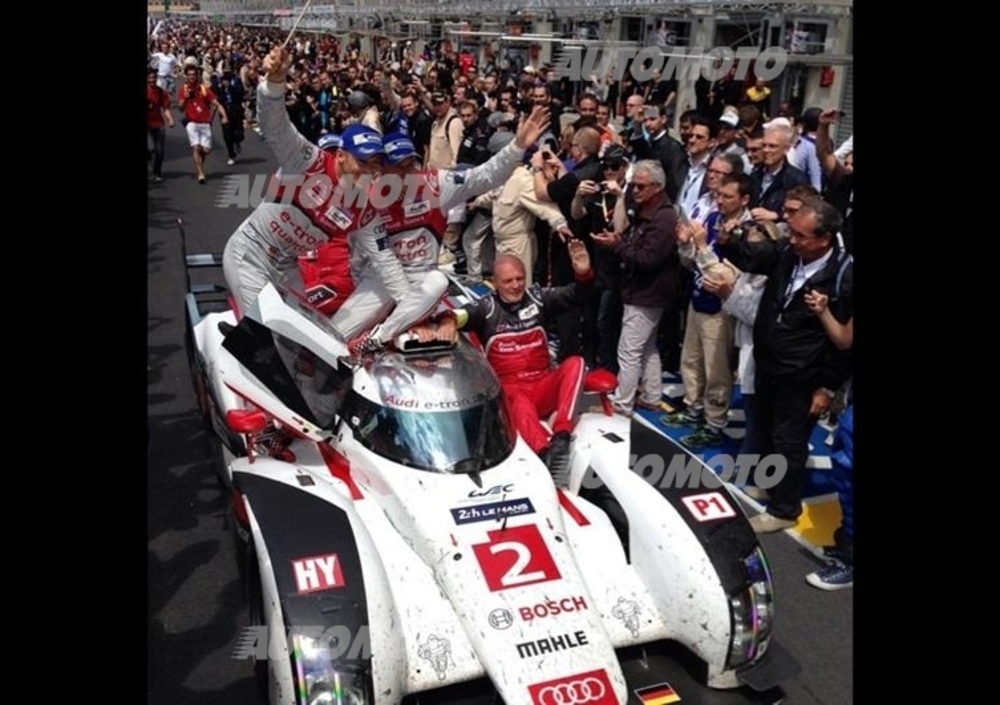 Ubbidire agli ordini di scuderia: a Le Mans tocca anche questo a volte ai piloti delle squadre di punta, magari a costo di rinunciare a una vittoria che vale una carriera, perché alla Sarthe i piloti sono gli eroi, ma il risultato della squadra viene prima di tutto. Stavolta però non è stato necessario, perché l’Audi di Di Grassi-Duval-Kristensen giunta seconda era staccata di 3 giri. L’arrivo in parata quindi è stata solo un’illusione ottica buona per le foto ricordo e le pubblicità.