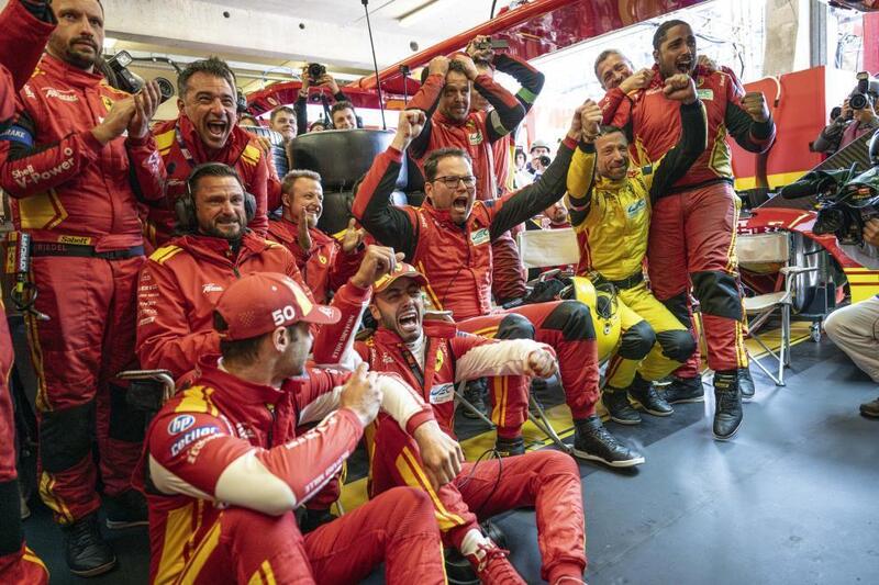 La Toyota numero #8 è finita in testa coda dopo un contatto con la numero #51 di Pier Guidi, crollando così in classifica e mandando in fumo le possibilità di Hartley di portare la propria Hypercar nipponica sul podio. Alla mossa del pilota italiano, tutto il team Toyota ha sussultato con un sospiro di pura frustrazione, ma con la consapevolezza che un'altra vettura con Lopez alla guida poteva ancora realizzare l'impresa. Eppure, nella sfortuna la Ferrari ha avuto fortuna. Un finale tiratissimo si è consumato e quando alle 16:00 precise la numero #50 di Nielsen ha tagliato il traguardo, tutti sono usciti fuori per applaudire il vincitore e la numero #7 salita sul podio in seconda posizione in mezzo alle due Hypercar di Maranello. Nel giro di rientro le vetture si sono schierate in parata per salutare i numerosi tifosi rimasti per tutte le 24 ore in pista e con i marshall che le hanno accolte con tutte le bandiere sventolate. In Toyota l'aria era comunque tesa perchè questa vittoria poteva essere raggiunta, ma il passo delle Ferrari era imprendibile per loro, soprattutto se consideriamo le diverse penalità che la #50 e la #51 hanno scontato. Il secondo posto non è di certo una vittoria ma per loro era come se lo fosse data la splendida rimonta che hanno fatto. La numero #7 di José Maria Lopez, Kamui Kobayashi e Nyck De Vries è infatti passata dall'ultima posizione in Hypercar fino alla seconda overall.