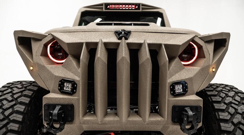 L’altezza da terra è incrementata da un lift di circa 6 pollici, mentre le ruote da 22 pollici con pneumatici 40” Ridge Blade assicurano trazione e capacità off-road estreme. La variante Desert Tan Armor Finish della carrozzeria con i suoi parafanghi avvolgenti e protezioni integrate conferma che l’Hellfire 2.0 non è solo rumoroso, ma anche pronto all’azione in ambienti difficili.