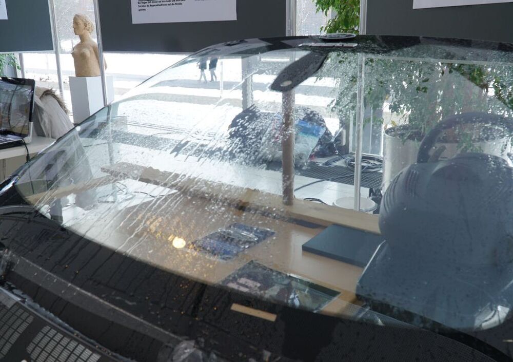 Gli ingegneri di Ford, non appena hanno sentito parlare dell’idea, ne sono stati così entusiasti da offrirsi di testare il dispositivo, applicandolo a una vera Ford S-MAX. Per raccogliere l’acqua, dei tubi di gomma sono stati collegati dal parabrezza alla vaschetta dei liquidi lavavetro. Un filtro provvede a depurarla.