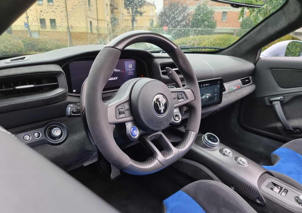 Le infinite possibilità di personalizzazione di Alcantara si intravedono in ogni centimetro quadrato: il volante ha i bordi razza in questo incredibile materiale, ripreso poi da tutta la zona centrale della plancia. E così, per esempio, la variante Cielo si posiziona perfettamente a metà strada fra una roadster da viaggio col vento tra i capelli, e una super-sportiva con l'ormai celeberrimo V6 Nettuno capace di farle coprire lo 0-100 km/h in appena 2,9 secondi.