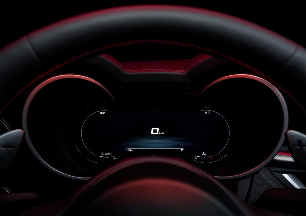 Binocolo (tecnicamente più corretto) o cannocchiale che dir si voglia, la nuova strumentazione per le top di Alfa Romeo è sopratutto digitale ma con un'impronta variamente configurabile: Evolved rappresenta la visione delle Alfa del futuro, più importanza all'area centrale delle informazioni pur mantenendo i quadranti laterali. Relax, poche cose ma essenziali e via i quadranti a fianco e infine Heritage, la più bella, senza dubbio, che ha pure i numeri invertiti sull'estremità finale del tachimetro, omaggio ai modelli degli anni '60 e '70.