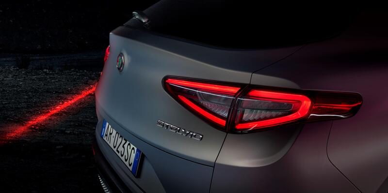 Anche le luci posteriori a LED cambiano per sottolineare la sportività, e qui è anche dove le due versioni, berlina e suv, pongono leggere differenze: la Stelvio ha vetro e finitura trasparente, mentre la Giulia preferisce il vetro fumé e il nero lucido.