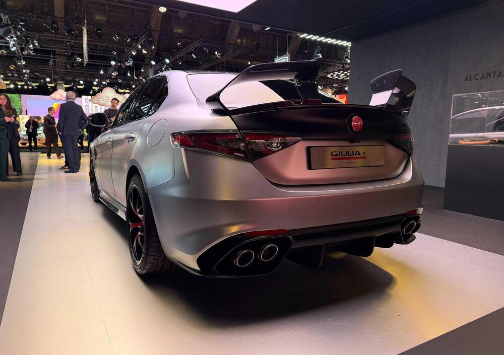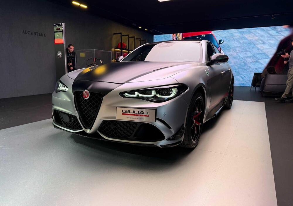 Per la prima volta nella storia del marchio, i loghi Alfa Romeo adottano un fondino rosso, scelta che richiama la passione agonistica e il heritage sportivo del Biscione. Anche i cerchi da 19 pollici vengono personalizzati con sfumature interne rosse, mentre scudetto, tetto e calotte specchi sono realizzati in carbonio a vista.