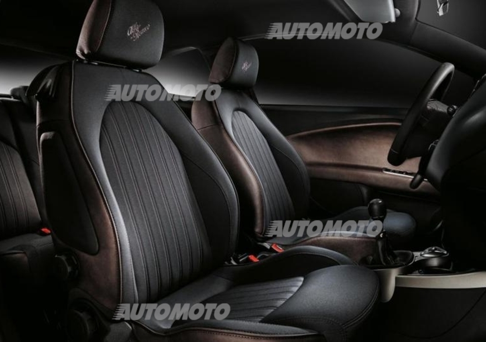 I sedili della Alfa Romeo MiTo Racer sono realizzati con una combinazione di tessuto grigio ed ecopelle marrone, con cuciture in tono e scritta Alfa Romeo sui poggiatesta anteriori. Il rivestimento in pelle con cuciture marroni è riservato anche al volante sportivo con comandi radio, alla cuffia cambio e alla leva del freno di stazionamento. Un tocco ulteriore dal gusto classico si nota anche nell’adozione di tappetini con scritta Alfa Romeo e cuciture marroni, della plancia di colore nero e del battitacco cromato.