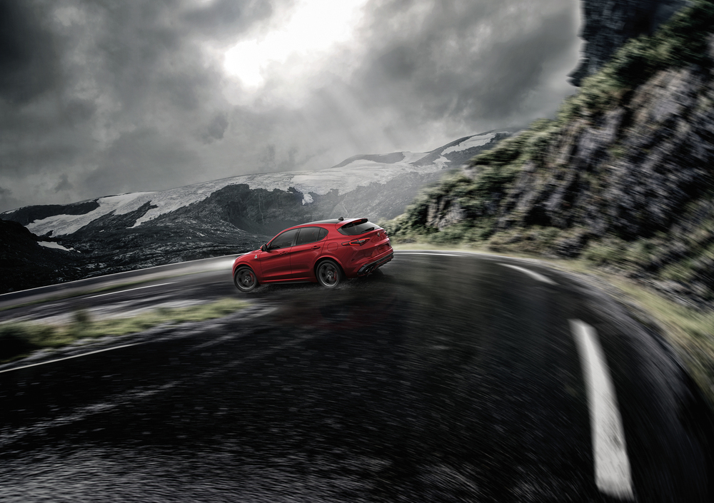 Lo Stelvio vanta inoltre trazione integrale ed un sistema di torque vectoring per migliorare trazione e stabilità; il sistema di trazione integrale Q4 permette di trasferire il 60% della coppia sull'assale anteriore. Stelvio Quadrifoglio propone anche il nuovo selettore Alfa DNA Pro che modifica il comportamento dinamico del veicolo in base alle scelte del guidatore: Dynamic, Natural, Advanced Efficiency (modalità di risparmio energetico) e Race (l'ideale per il massimo delle prestazioni).