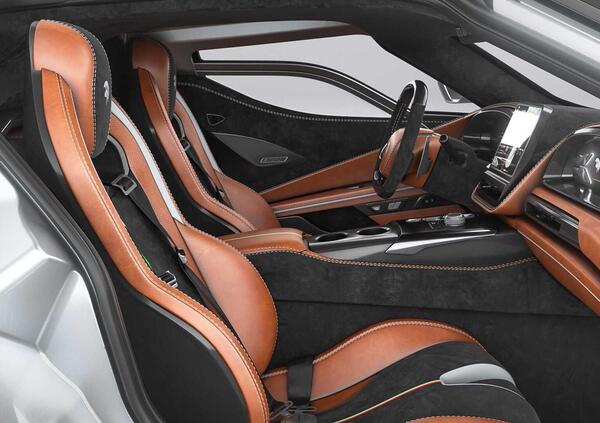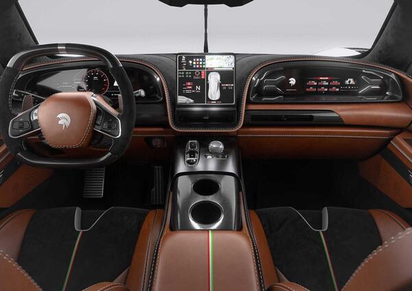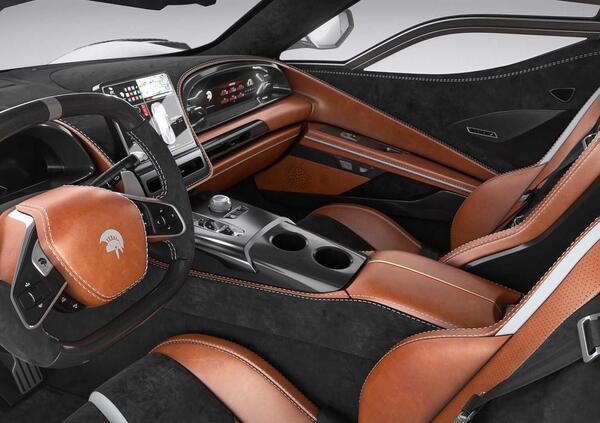 Gli interni della S1 sono realizzati con pelle italiana Pieno Fiore, Alcantara e fibra di carbonio. Sono completamente personalizzabili dal cliente durante il processo di co-creazione del veicolo.