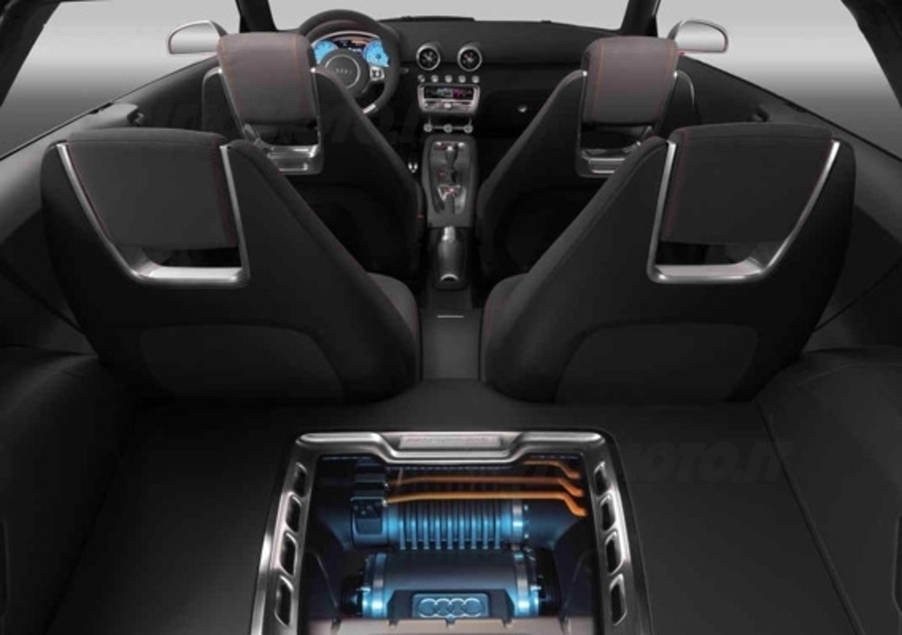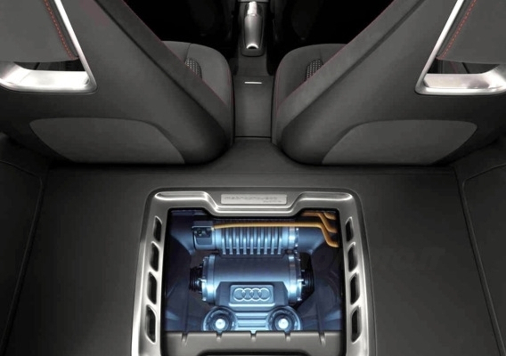 Se il design della nuova Audi A1 calamita immediatamente l'attenzione, non meno interessanti sono i concenuti tecnici: la concept è infatti equipaggiata con un quattro cilindri a benzina 1.4 TFSI (ovvero dotato di turbo e iniezione diretta) capace di sviluppare 150 cavalli scaricati sulle ruote anteriori. E la denominazione Quattro? Il trucco c'è e un piccolo pannello di vetro dietro il divano posteriore lo svela: al retrotreno è stato aggiunto infatti un propulsore elettrica per ulteriori 41 CV e altri 200 Nm di coppia.