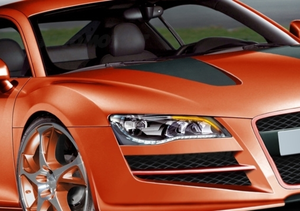 Ma andiamo con ordine e partiamo dal kit aerodinamico che prevede un completo rifacimento di paraurti anteriori e posteriori, ma anche un nuovo cofano anteriore e delle minigonne dal profilo piuttosto marcato. Si tratta di elementi pensati per rendere ancor più aggressivo l'aspetto della R8, ma che non sembrano appesantirne troppo la Silhouette...anzi: il nuovo andamento delle prese d'aria anteriori, più ampie e protette da una evidente griglia, ha permesso di non stravolgere la calandra single frame, mentre l'introduzione di un inedito quanto "massiccio" estrattore d'aria posteriore ha portato ad un completo restyling del fascione, il quale ora ospita i quattro tubi di scarico in posizione sovrapposta/diagonale.