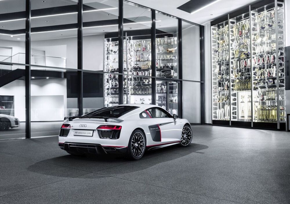 Audi celebra la 323 vittorie nelle varie competizioni Gran Turismo ottenute dalla Audi R8 dal 2009 ad oggi con la Audi R8 Coupé V10 plus “selection 24”, una versione limitata a soli 24 esemplari della supercar dei Quattro Anelli distinta da alcuni elementi realizzati ad hoc, come la tinta nei colori grigio Suzuka con dettagli in rosso Misano e nero ispirati dalla livrea ufficiale delle R8 LMS.