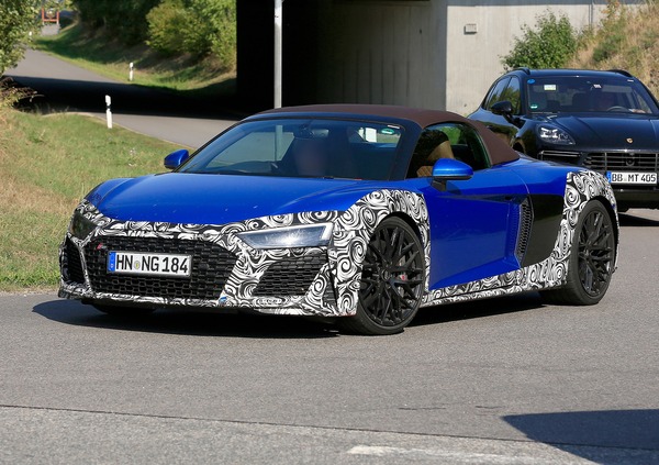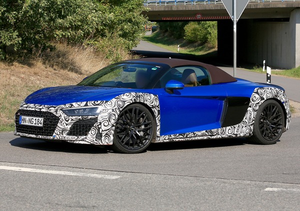 Per la Audi R8 V10 Spyder è tempo di rifarsi il look: i nostri fotografi hanno immortalato un muletto parzialmente camuffato del restyling della vettura dei Quattro Anelli impegnato in un test in Germania.