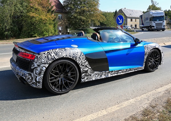 Le novità più interessanti sembrano concentrarsi sul posteriore della R8 V10 Spyder, con i terminali di scarico, non più angolari, ma di forma rotondeggiante. Inedito anche il diffusore.