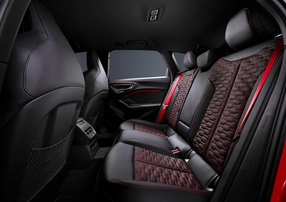 Il display MMI mostra in tempo reale i flussi di energia sia in accelerazione sia in recupero, le temperature di pneumatici, cambio, differenziale posteriore e batteria. Per chi va in pista, la funzione Audi Driving Experience - di serie - registra dati di acceleratore, freno, sovrasterzo e sottosterzo, tempi sul giro per settore, angolo di derapata in modalità RS torque rear e crea automaticamente profili di circuiti nuovi o privati dopo un giro di rilevamento.