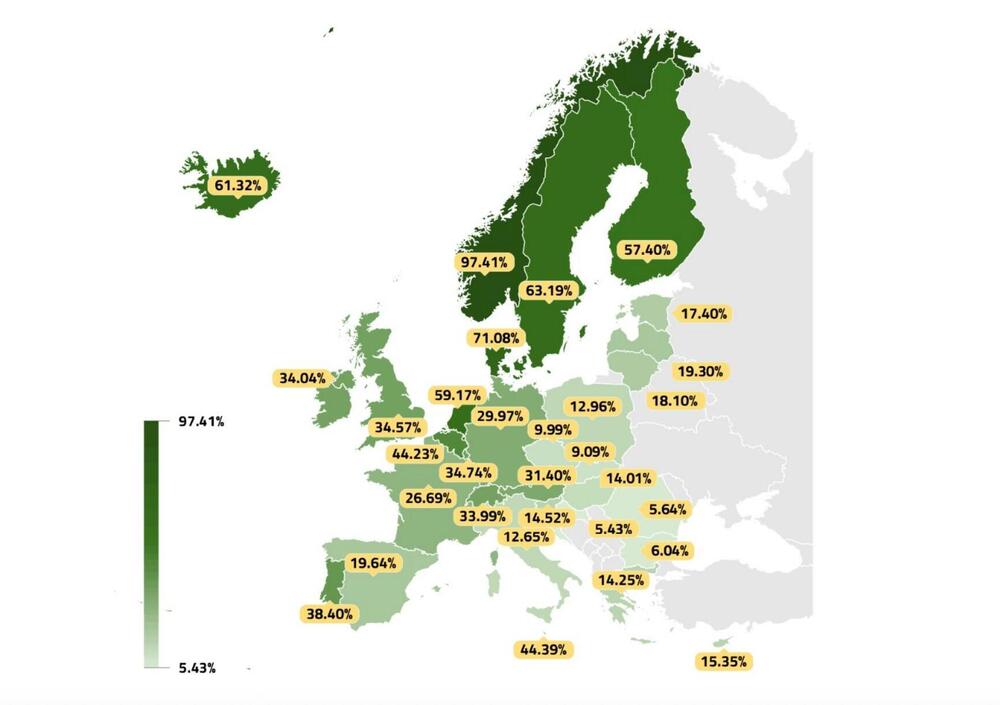 Anche il Belgio, nonostante una penetrazione elettrica ancora elevata, oltre il 43%, ha subito una flessione del 5,60%. È il classico "effetto raffreddamento post-sussidi": quando gli incentivi si riducono o cambiano forma, la domanda si contrae, almeno temporaneamente.