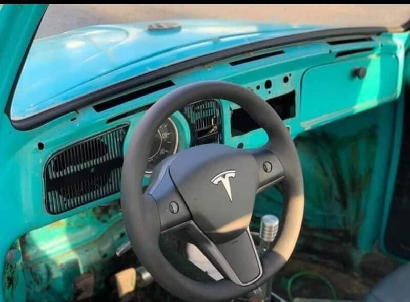 Da sempre si possono declinare molti usi del vecchio modello WV stravolgendone forme e utilizzo. Quello in foto però, sembra un quasi un sacrilegio: volante Tesla al posto dell’originale. Che poi VW l’erede Maggiolino in formato elettrico lo ha già pensato e prodotto, si chiama ID. In ogni caso l’effetto è forte e non ci sta pure malissimo, a vista. Finché si parla di fantasie..