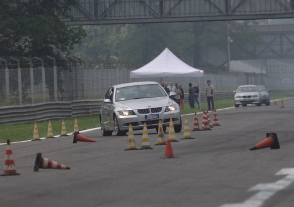 Le esercitazioni della mattinata prevedono tre sessioni di un’ora ciascuna, le prime due delle quali vedono impiegate 2 MINI equipaggiate di un sistema Skid, una Serie 1, una Serie 3 e una vettura M. La prima sessione è finalizzata alla comprensione dei trasferimenti dinamici dei carichi durante le varie fasi di una curva e all’apprendimento delle manovre corrette in tali situazioni di guida. La seconda punta alla comprensione del comportamento di una vettura che affronta una curva e le cause che possono provocare perdite di aderenza all’anteriore o al posteriore. La terza si suddivide in due esercizi, uno per perfezionare le tecniche di frenata nell’inserimento in curva e l’apprendimento delle corrette traiettorie, l’altro consente all’allievo di comprendere la dinamica di uno scarto improvviso durante la marcia in rettilineo.