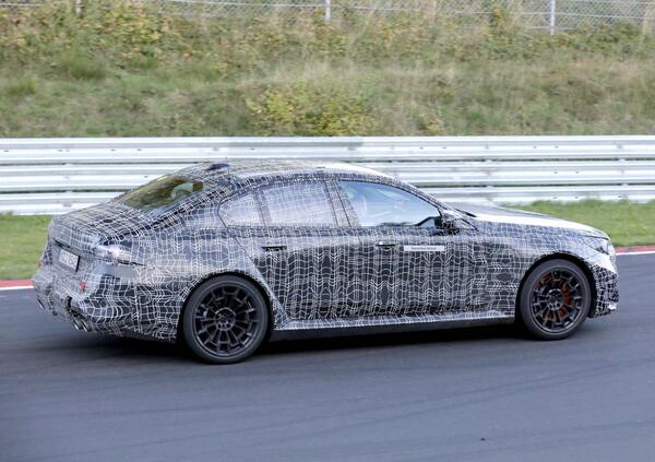 Completamente mimetizzata, l’auto stava svolgendo dei test nel circuito tedesco e grazie alle foto spia, possiamo notare un adesivo con una scritta "electrified vehicle” incollato sul portellone e questo particolare, confermerebbe l’annuncio del CEO di BMW M. Infatti, nel 2021 aveva dichiarato che la nuova generazione della M5 sarebbe stata dotata della tecnologia ibrida.