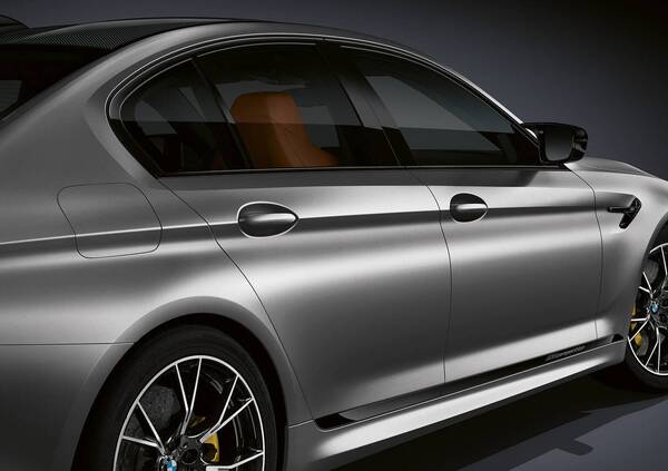 Dal punto di vista estetico, la vettura presenta diversi accenti in nero lucido: di questa tinta sono le maniglie delle porte, le coperture degli specchietti, e lo spoiler posteriore. La M5 Competition vanta poi cerchi da 20" e sospensioni ribassate di 7 millimetri rispetto alla M5 tradizionale. Il Variable Control Damper consente tre modalità di settaggio, Comfort, Sport e Sport Plus.