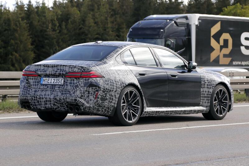 Nella parte posteriore la nuova BMW M5 viene equipaggiata con un sottile spoiler, mentre replica il design a trapezio della parte anteriore nell'inserto del paraurti posteriore, sottolineando ulteriormente l'alloggiamento delle due coppie di scarico.