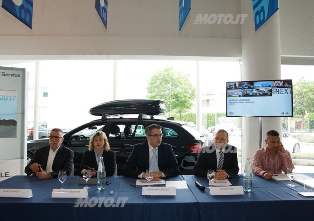 Werner Pagenstert, After Sales Marketing Manager di BMW Italia, e Cesar Habib Responsible for Aftersales Sales & Marketing Department di BMW AG, hanno consegnato uno speciale riconoscimento al Dott. Carlo Bonetti, titolare della concessionaria Autogemelli di Vicenza (Gruppo Fimauto), per aver venduto il duemilionesimo pacchetto di Manutenzione Programmata BMW a livello mondiale.