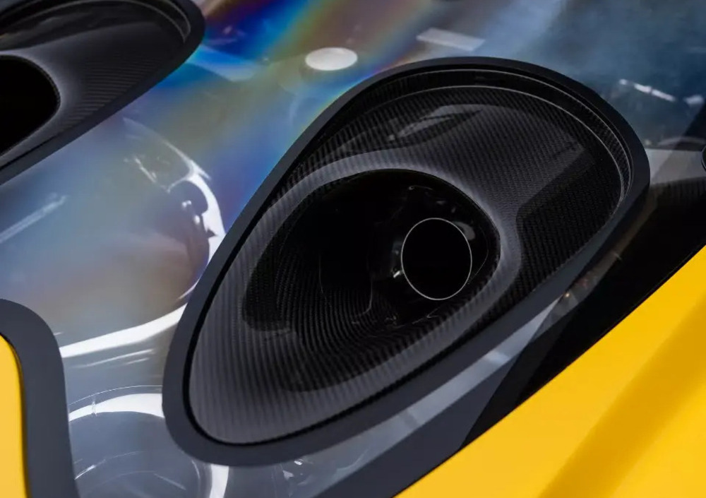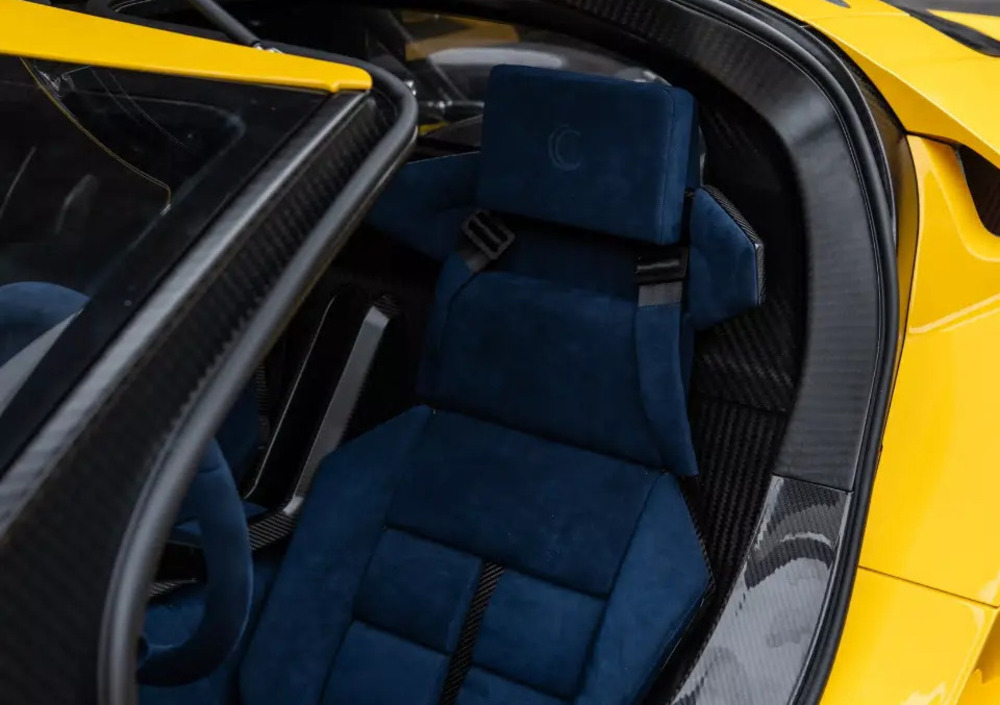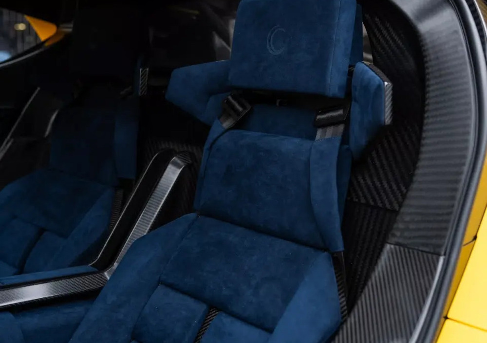 All’interno, l’abitacolo dà priorità al contatto diretto tra uomo e macchina: troviamo strumentazione analogica, volante con comandi essenziali, sedili avvolgenti e materiali pregiati come pelle Connolly, Alcantara e carbonio a vista. Non c’è spazio per touchscreen o assistenti digitali invasivi: ogni elemento è pensato per mantenere l’attenzione del pilota focalizzata sulla strada.