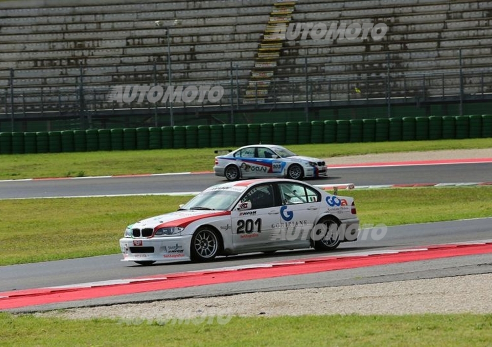 In tutto questo c'è qualcosa che gioca a mio favore. Le gomme, nonostante l'acqua sul nuovo asfalto di Misano (eccezionale grazie al lavoro di Jarno Zaffelli e dell'emiliana Dromo), sono rodate e già "caldine" e quindi posso entrare in pista cercando di spingere...nei limiti di una slick sul bagnato. Ci provo sin dai primi giri e mi porto immediatamente sul 2'01" grazie anche ad un paio di giri completamente sgombri da traffico e problemi. Inizio a spingere di più ma purtroppo mi giro in un giro buono e perdo un po' di fiducia: la vettura con le slick sul bagnato scivola, ma è progressiva, dà fiducia, ma mettere due ruote oltre è davvero facile e l'errore è dietro l'angolo. Rientro ai box, facciamo le pressioni delle gomme e mi rilancio ma non riesco a migliorare: continua a piovere ed in alcune zone non si riesce più a forzare come prima. Poco male perché nessuno degli altri migliora e quel 2'01" ci vale una quarta posizione dietro al Cinquone da 360 CV di Matteo Milani che ci riempie di gioia e ci fa pensare che domani sarà una bella corsa.