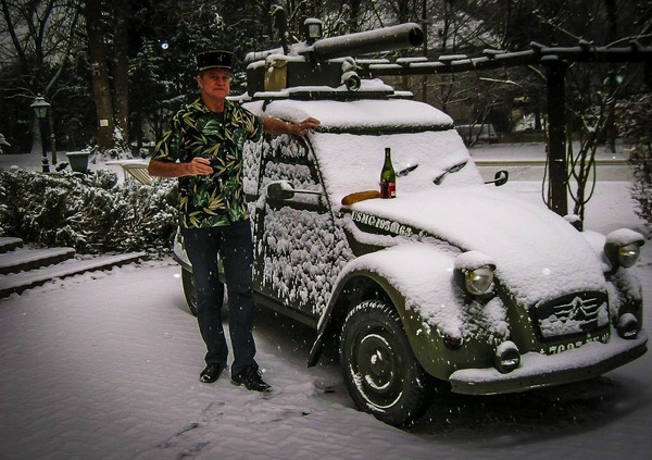 GM. “Sì, le Due Cavalli mi piacciono molto. Direi che sono un effetto unito e parallelo del mio amore per la Francia. Non c’è bisogno di dire perché, della 2CV si è detto ormai tutto. È il fatto per cui è universalmente amata. Posso aggiungere qualcosa di personale. Le Due Cavalli sono molto divertenti. Ne ho ancora cinque. Nel tempo ne ho avute molte, le ho modificate, interpretate in modo divertente, ironico. Alcune sono state modificate in modalità “Militaire”, con armature blindate e cannoni. Funzionanti! Altre sono state interpretate partendo da un’altra delle mie vite, e modificate in modo “Policier”.”