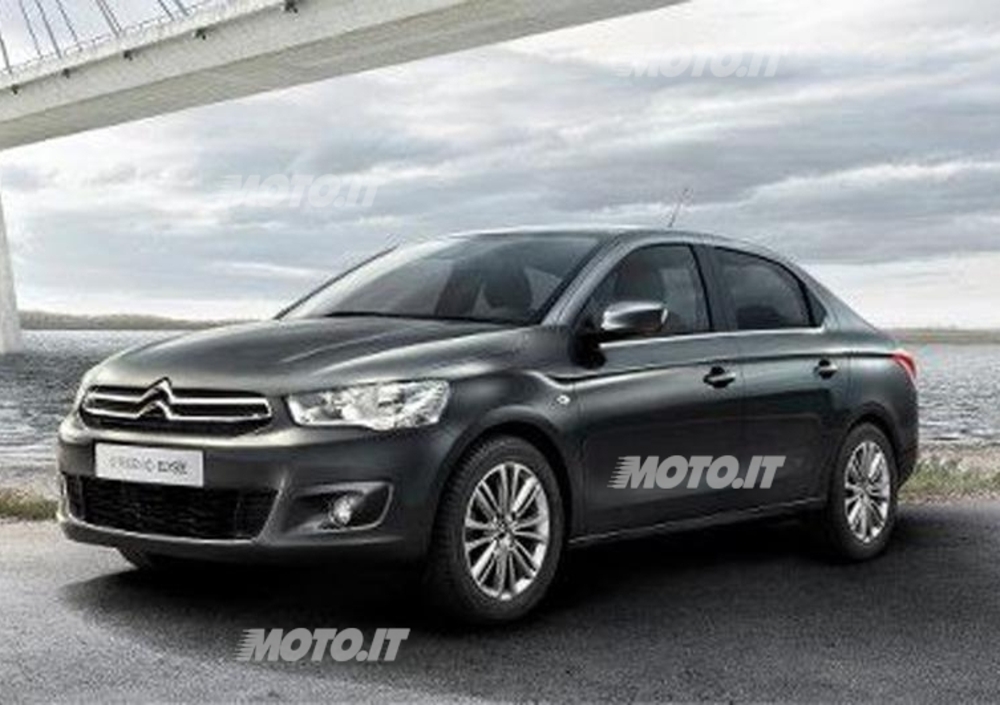 Esternamente la nuova tre volumi francese sfoggia gli stilemi tipici del rinnovato linguaggio stilistico della Casa, con un sezione frontale dominata dalla calandra al centro di cui campeggia il vistoso logo Citroën cromato. La parte inferiore del paraurti guadagna un’ampia presa d’aria per il radiatore, mentre alle estremità del fascione anteriore due apposite cavità ospitano i fendinebbia. I gruppi ottici ricordano il design di quelli adottati dall’attuale C4, mentre il cofano motore presenta una serie di nervature che hanno il compito di “alleggerire” il look delle superfici di carrozzeria.
