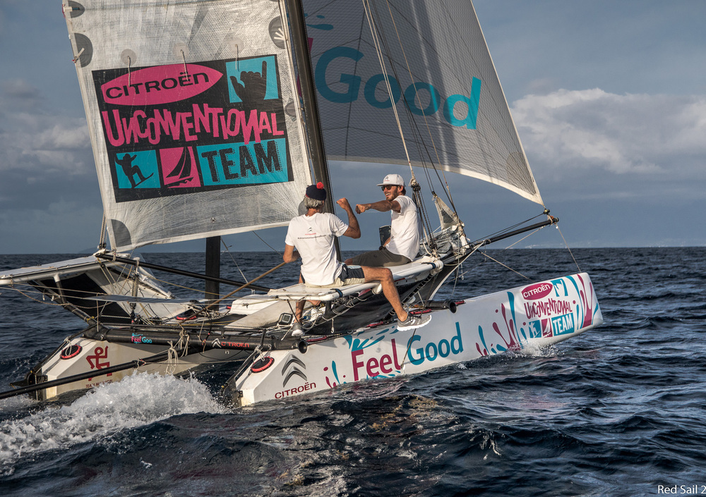 Il Citroën Unconventional Team, nato lo scorso anno grazie alla sponsorizzazione della casa del Double Chevron, squadra composta da sette atleti che competono in sport di scivolamento, è riuscito ad infrangere un nuovo record sportivo. Vittorio e Nico Malingri, a bordo del catamarano Feel Good hanno demolito il record della traversata atlantica Dakar-Guadalupe, dall'Africa alle Antille. Record mondiale che si aggiunge a quello realizzato in estate nel Mediterraneo, sulla rotta Marsiglia – Cartagine. I protagonisti di questa storia sono padre e figlio, un team inseparabile e affiatatissimo. Li abbiamo conosciuti al ritorno dall'impresa, ce l'hanno raccontata e sullo sfondo c'era il video della loro traversata. Ci hanno raccontato degli undici giorni trascorsi a bordo del catamarano di sei metri, progettato dallo stesso Vittorio e realizzato in carbonio sottovuoto con post-cottura di scafi, albero, traverse, timoni e derive. Hanno condiviso ogni attimo, quando uno dormiva, l'altro timonava, alternandosi all'interno di due piccole protezioni di tela poste sulle terrazze laterali.