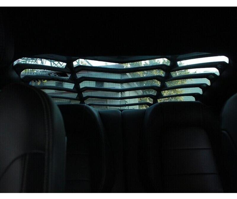 Questa è la vista dal lunotto posteriore, e non ha bisogno di commenti. Il sistema di fissaggio, tra l'altro, è realizzato con il biadesivo e se la "persiana" da lunotto di finto carbonio dovesse staccarsi in velocità possiamo immaginare le conseguenze per chi sta dietro. Il sito di E-commerce proprio questa settimana e fino al 21 agosto dedica uno speciale all'aftermarket automobilistico, ma attenti a quel che comprate!