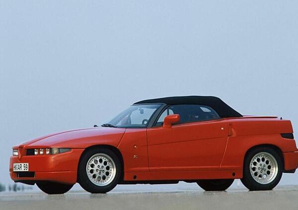 ALFA SZ / RZ. Vedi sopra ma meno significativa per il collezionismo e meno prelibata meccanicamente. Voto 8 per l’immagine, anche meno per comfort e guida, rispetto al ruolo da supercar e il tempo in cui uscita. Colore rosso.