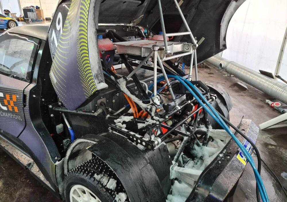 In gara è stranamente emozionante, perchè in movimento non è inerte e sterile come si immaginerebbe un'auto elettrica. Fa rumore, si sentono gli inverter, i motori girare ad alti giri e le gomme chiodate scalfire il ghiaccio. Sembra quasi il forte rumore in aspirazione o in compressione dei classici motori da competizione.. e poi è veloce. Si è dimostrata la più efficace in assetto e bilanciamento generale, trovando tantissima trazione e collezionando da parte di tutti i piloti elogi sul divertimento alla guida.