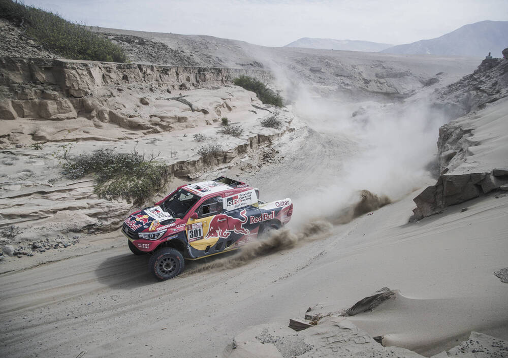 Peterhansel non aveva ancora vinto quest’anno, eppure la sua regolarità di marcia gli valeva già la leadership della Corsa con un vantaggio di sei minuti su Loeb e il doppio circa su Sainz. Tre Peugeot erano al comando a San Juan de Marcona. Ora, la vittoria del Campione in carica nella quinta Tappa, unita al ritiro di Loeb, principale avversario di Peterhansel fino a quel momento, modifica la struttura della classifica generale. Non più tre Peugeot in testa al Rally, come alla vigilia, ma due soltanto, quelle di “Peter” e di Sainz. In compenso la situazione generale definisce meglio i suoi contorni. Peterhansel ha ora, infatti, oltre mezz’ora di vantaggio su Sainz e Cruz, e il primo avversario non Peugeot, l’olandese Bernd Ten Brinke, dista dall’Equipaggio di testa un’ora e un quarto.