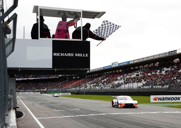 Ad animare le fasi conclusive è stato ancora il testa a testa tra Rast e Wittmann, che a un quarto d’ora dalla fine ha superato il campione in carica, il quale ha poi “restituito la cortesia” riprendendo il ritmo e stabilendo nuovamente le distanze nei confronti della BMW. Intanto Müller, quatto quatto, si è portato dietro ai primi tre, diventando sempre più ingombrante negli specchietti della RS 5 di Rockenfeller. A sei minuti dal termine il sorpasso; poi tutto è crollato per il pilota elvetico, richiamato a effettuare un’ultima sosta ai box e, come se non bastasse, penalizzato con un drive through per avere superato il limite di velocità in pit-lane. Rast ha invece proseguito indisturbato, tagliando il traguardo davanti a Wittmann, con Rockenfeller che in extremis ha riconquistato il podio. In campionato Müller mantiene la seconda posizione, con Wittmann staccato di 21 punti. L'Audi Sport Team Rosberg ha invece vinto praticamente il titolo Team.